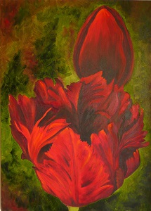 חדווה, ילידת ירושלים, המתגוררת במשגב שבגליל מציירת על בדים גדולים בשמן ואקריליק תוך שימוש נרחב בטכני