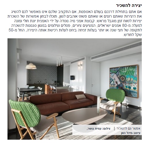 כתבה במאקו על שילוב אמנות בבית – כתבתה של עופרי פז